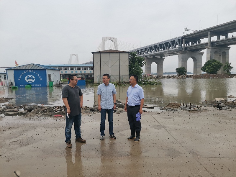 沿著長(zhǎng)江防洪大堤,方曉同志一邊檢查一邊聽(tīng)取項(xiàng)目施工單位防汛工作匯報(bào)。目前,施工單位中鐵大橋局項(xiàng)目人員已有序撤離危險(xiǎn)區(qū)域、工程資料已經(jīng)妥善安置,并與屬地政府、所在街道組成防汛值班隊(duì)伍,安排人員24小時(shí)現(xiàn)場(chǎng)值班,并組建了一支50人的突擊分隊(duì)隨時(shí)應(yīng)對(duì)突發(fā)險(xiǎn)情。
