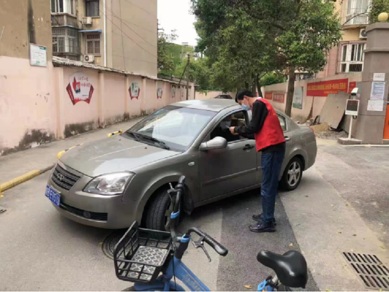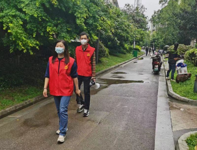 黨員志愿者在社區(qū)內(nèi)巡邏,向社區(qū)居民宣傳疫情防控知識(shí),及時(shí)發(fā)現(xiàn)和堵塞防控漏洞。