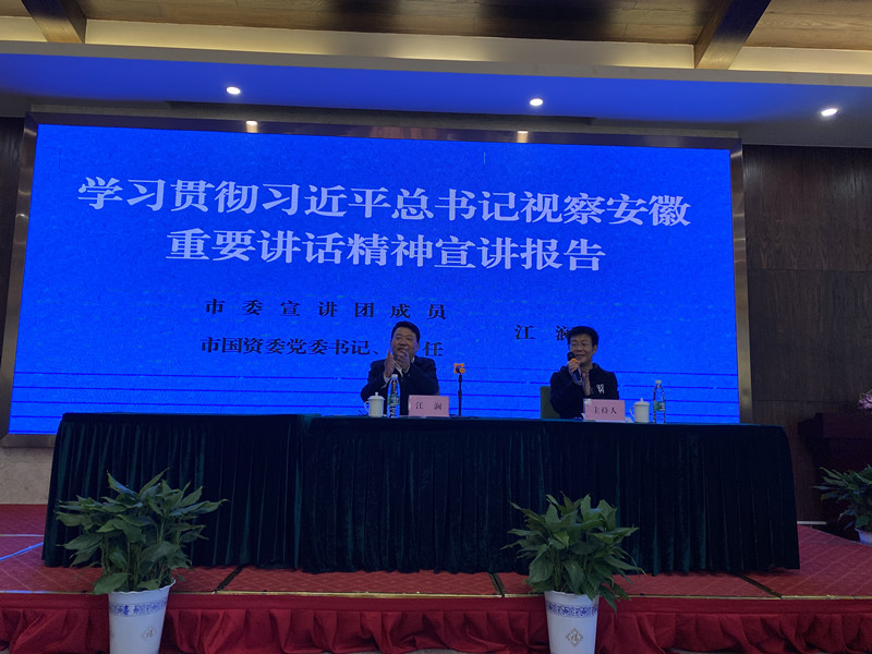 活動第二部分,公司邀請了市委宣講團(tuán)成員、市國資委黨委書記、主任江瀾同志給公司全體員工作了《學(xué)習(xí)貫徹習(xí)近平總書記視察安徽重要講話精神》的宣講。江主任對習(xí)總書記視察安徽重要講話精神作了深刻的闡述,并結(jié)合實際對我公司為蕪湖市經(jīng)濟(jì)、產(chǎn)業(yè)發(fā)展所作貢獻(xiàn)、取得成績給予高度認(rèn)可,進(jìn)一步激發(fā)了公司全體員工干事創(chuàng)業(yè)的激情。