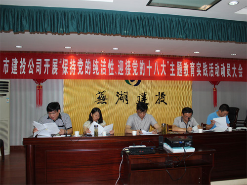 根據(jù)市委統(tǒng)一部署,公司于7月5日召開“保持黨的純潔性、迎接黨的十八大”主題教育實踐活動動員大會,公司全體黨員參加了會議。會議由公司副總經(jīng)理朱毅主持,公司紀(jì)檢組長汪學(xué)德向全體黨員傳達(dá)了市委相關(guān)文件精神,公司副總經(jīng)理方曉向全體黨員通報了公司主題教育實踐活動實施方案,公司副總經(jīng)理湯高繼帶領(lǐng)全體黨員學(xué)習(xí)了胡錦濤總書記在慶祝建黨九十周年上的講話、在十七屆中央紀(jì)委第七次全會上的講話及張寶順在省第九次黨代會上的工作報告等資料。全體黨員觀看了專題電教片《永葆黨的純潔性》等。